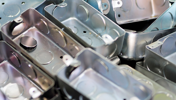 - Durable metal parts for electrical junction boxes, fasteners, and mounting systems.